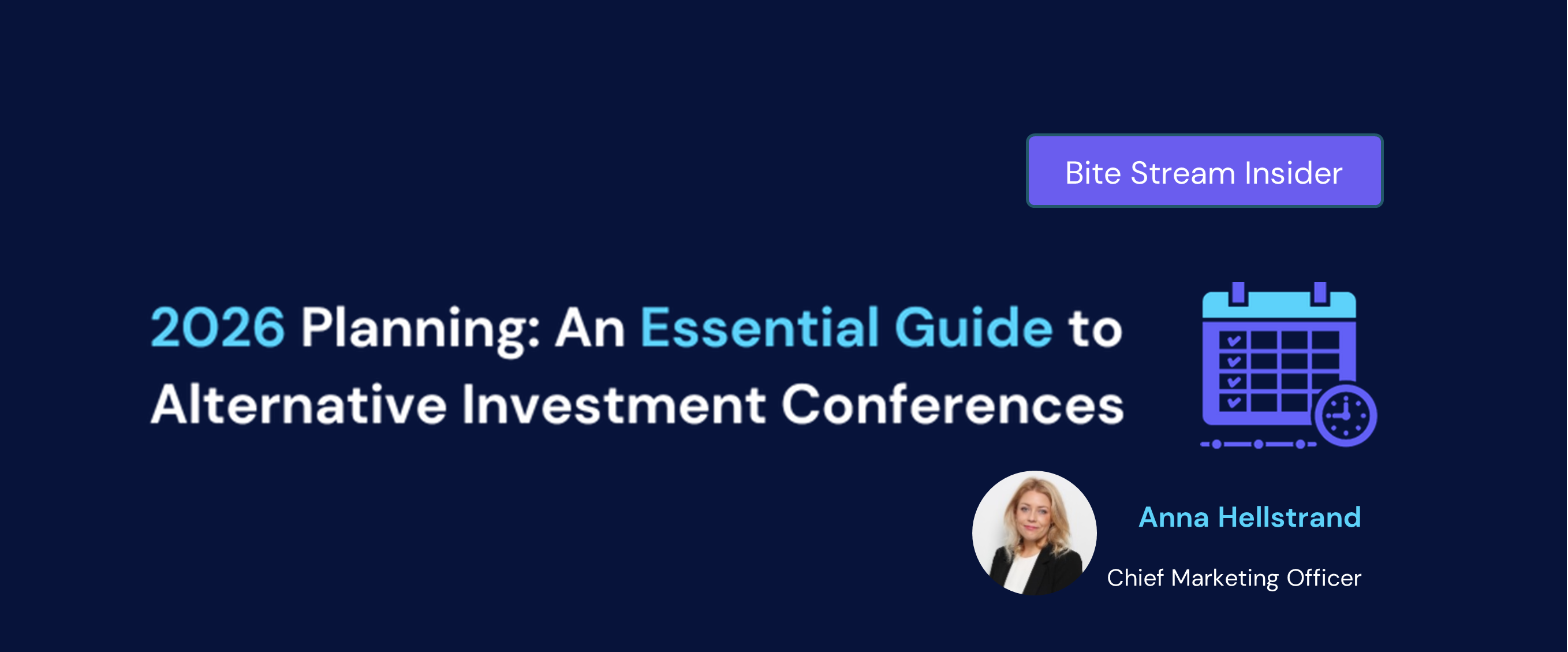 Disclaimer: The list below reflects a selection of industry events within the alternative investment industry as of 12 January 2026, compiled to support planning for the year ahead. This is not intended to be a comprehensive list, nor a ranking of importance or quality. Bite Stream does not necessarily have a relationship with all organizations mentioned and is not endorsing any specific events. Individual requirements and preferences will vary, and readers should conduct their own research to assess suitability.