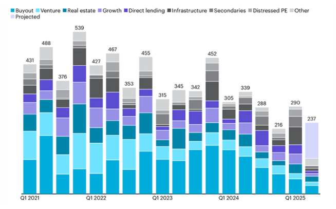 Figure 1: Global private capital raised, by type ($B)