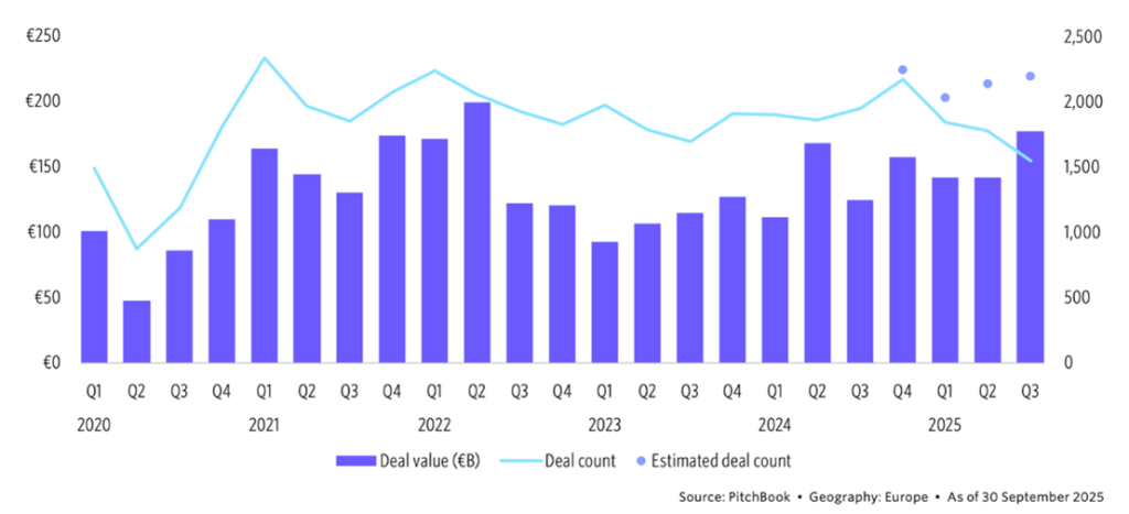 Source: Pitchbook, Geography: Europe, As of 20 September 2025