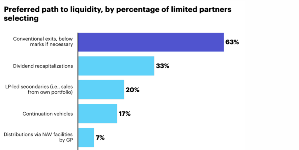 Figure 3: LPs want more conventional exits, even at valuations below recent marks
